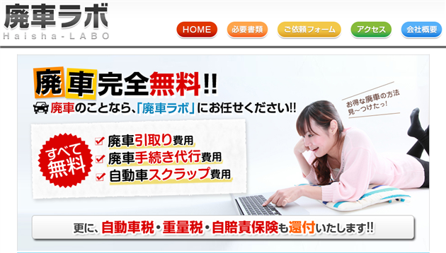 廃車ラボは廃車の買取、無料引き取りでは、老舗サイトで実績も豊富です。