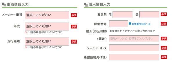まず、最初に車買取一括査定サイトの登録画面にアクセツ!