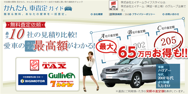 車一括査定サイトの1つで、車検切れや車検前の車の査定に強い業者との提携も多いので、査定価格に期待できます。