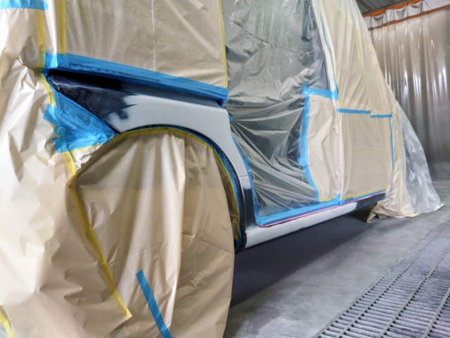 ・塗りたい箇所以外の箇所を養生して、ぼかし剤を塗り、カラー塗料を塗る