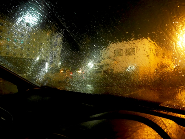 フロントガラスのギラギラ、油膜で見にくくなった際に、やってはいけないことは、そのまま運転することです。