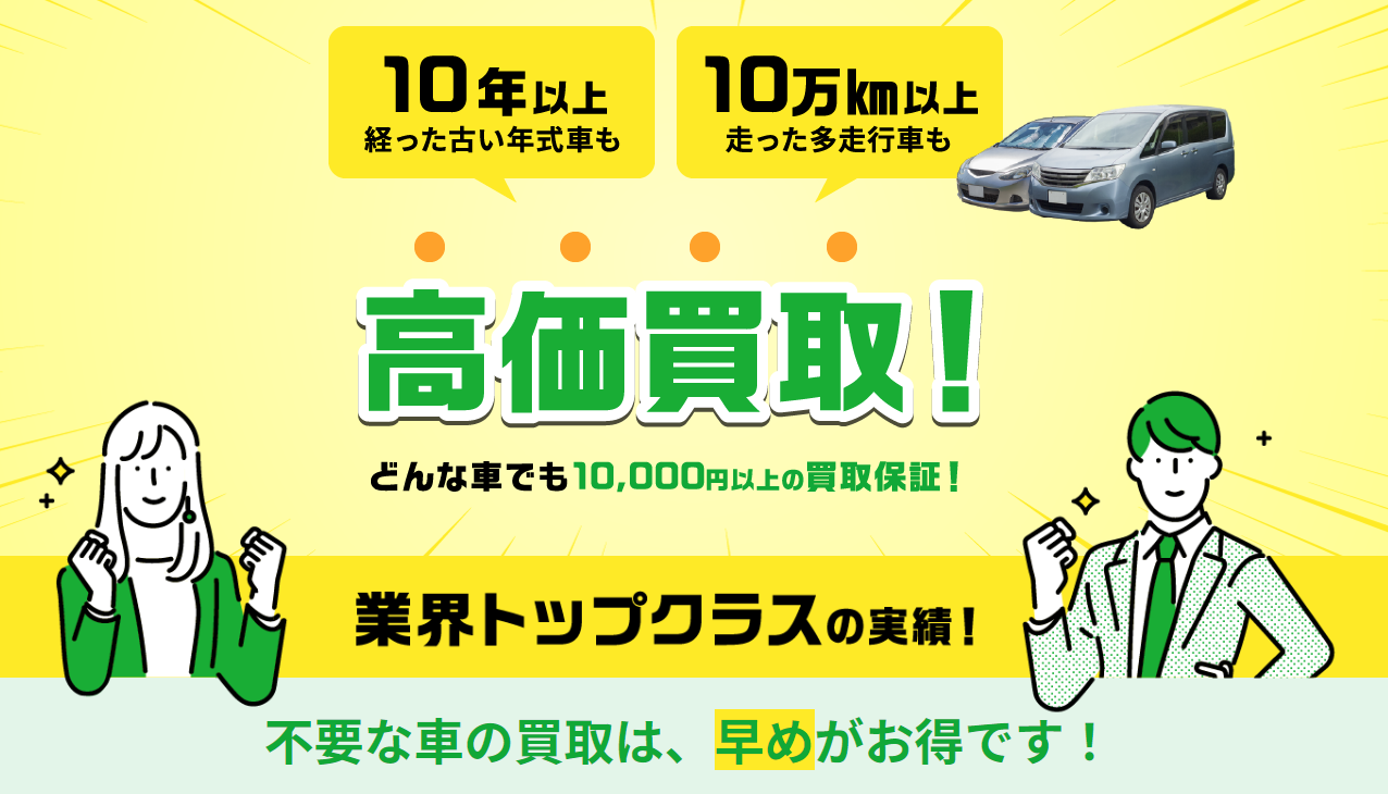 古い車や事故車、不動車など他の車買取サイトや中古車店では買取に消極的な中古車でも積極的に買取してくれるイメージです。