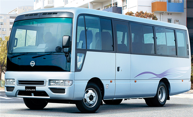 日産から発売されているマイクロバスが、シビリアンです。車高6.9m、車幅2.0m、車高2.6mで標準サイズのマイクロバスです。