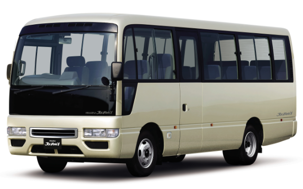 いすゞのジャーニーも標準的なマイクロバスですが、車高と車幅が他メーカーよりも少し大きく、室内空間が広く感じられます。